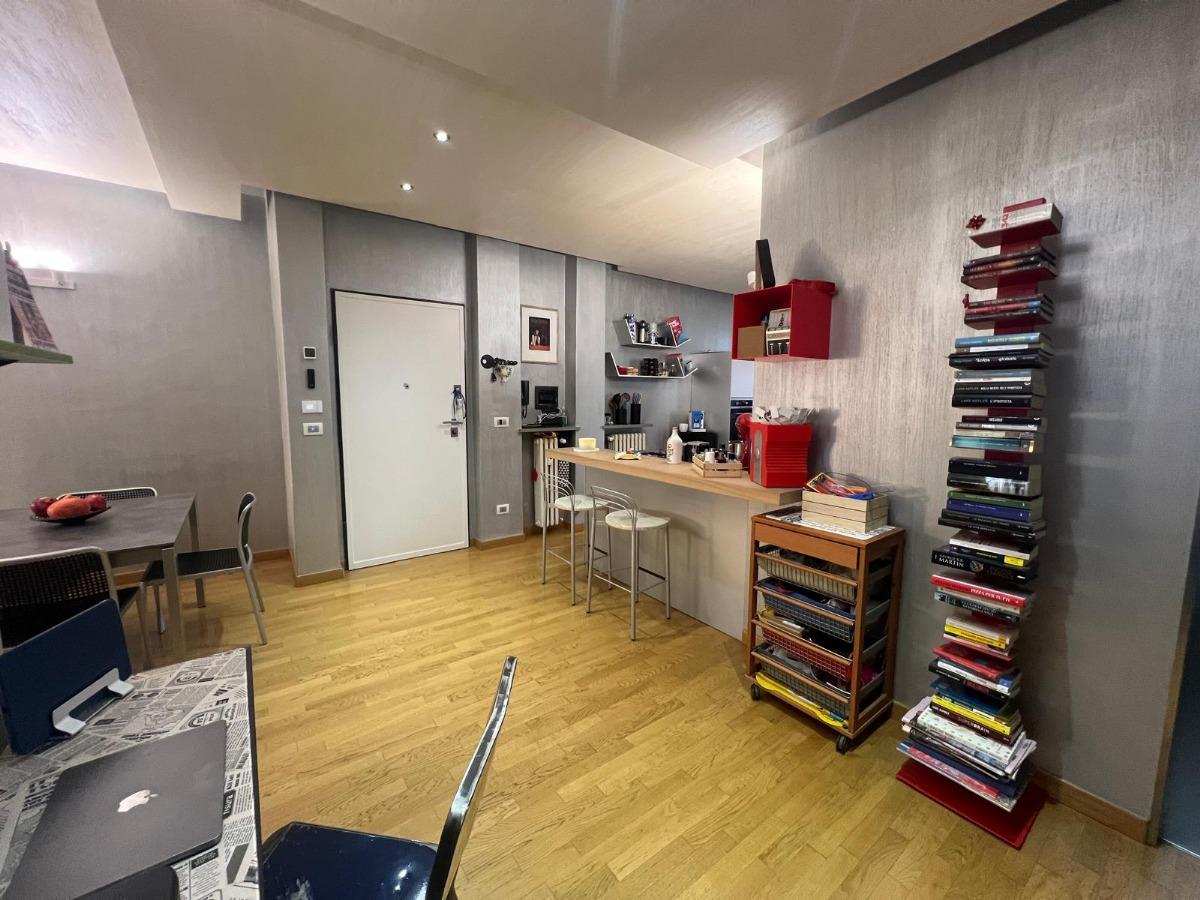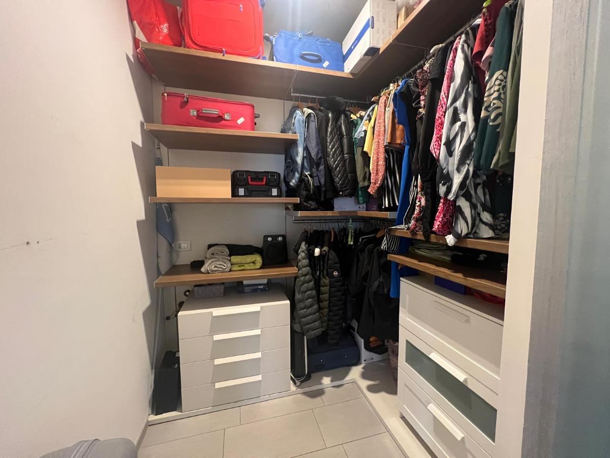 Ingresso in cucina - soggiorno open space con affaccio sui due balconi, disimpegno, camera da letto con cabina armadio e pavimento in parquet nuovo, bagno con doccia.