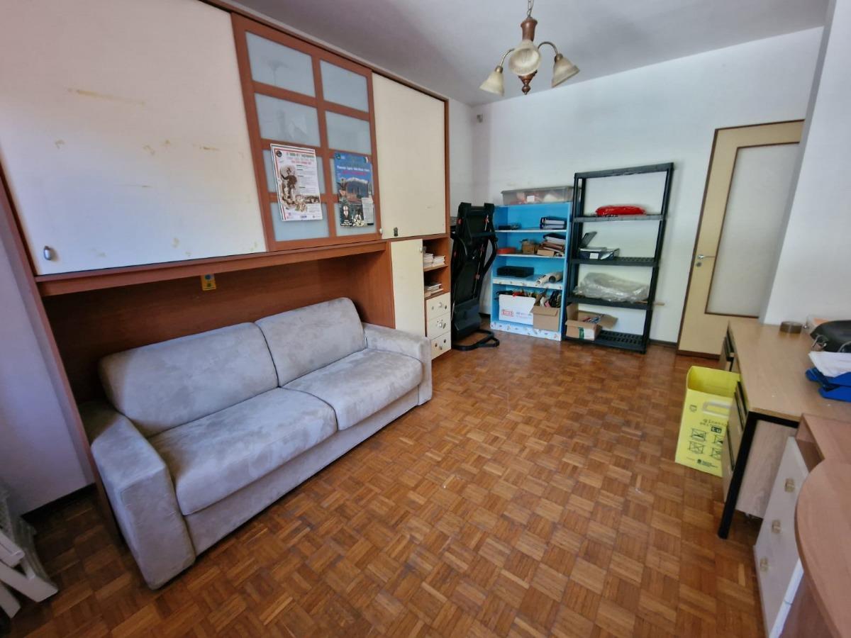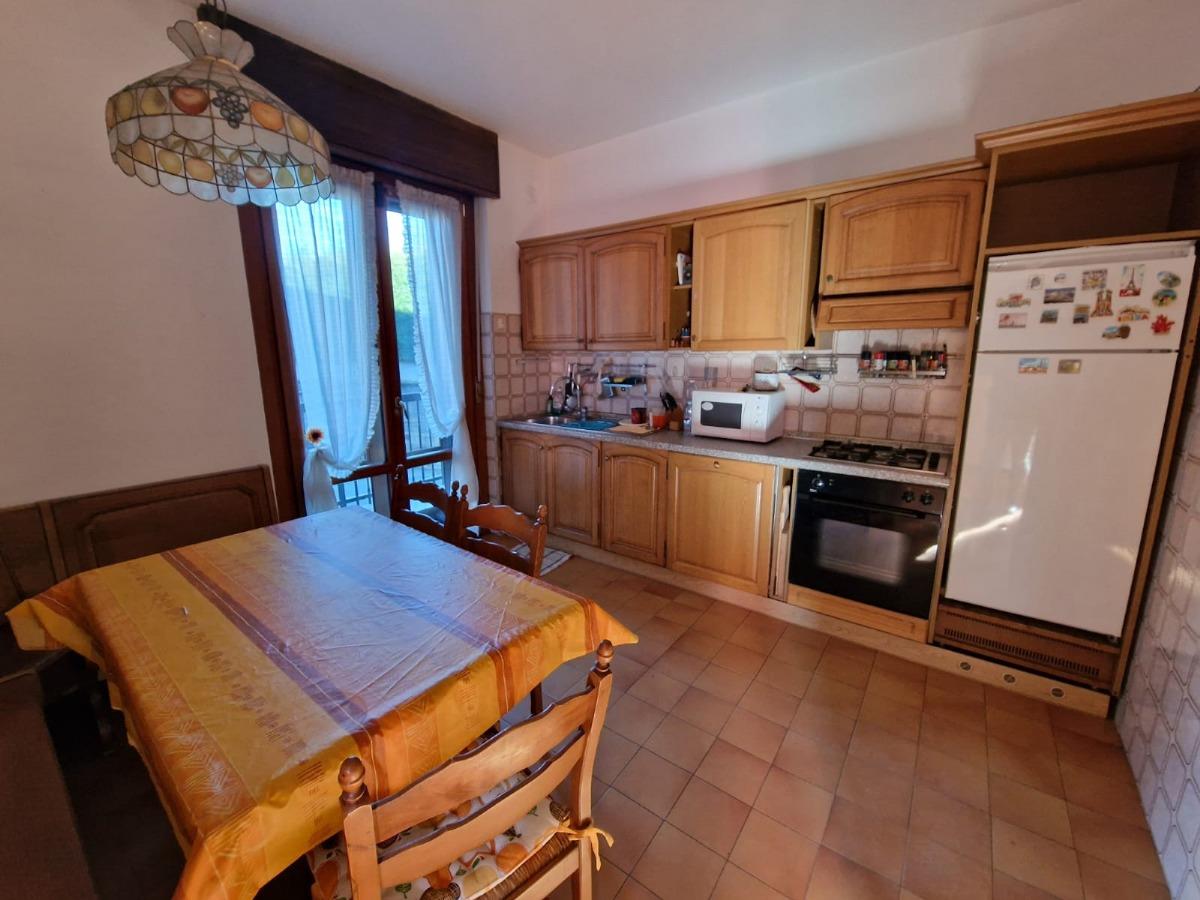 Completano la proprietà al piano interrato la cantina e al piano terra un box auto. L'immobile è ben disposto e ben tenuto, sono presenti infissi in pvc con doppio vetro e il bagno è stato rifatto negli anni 2000.