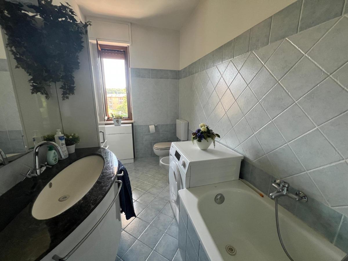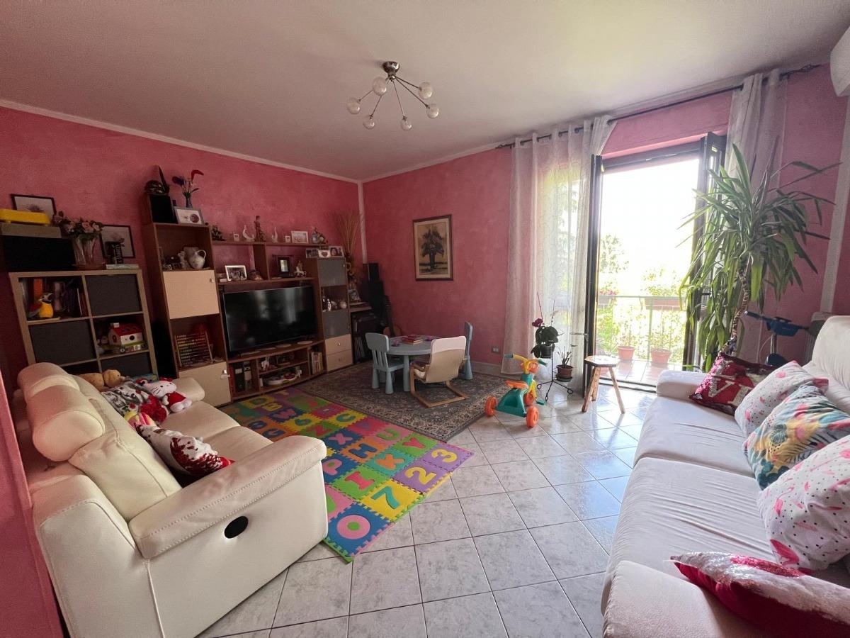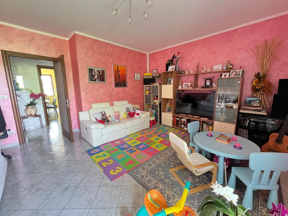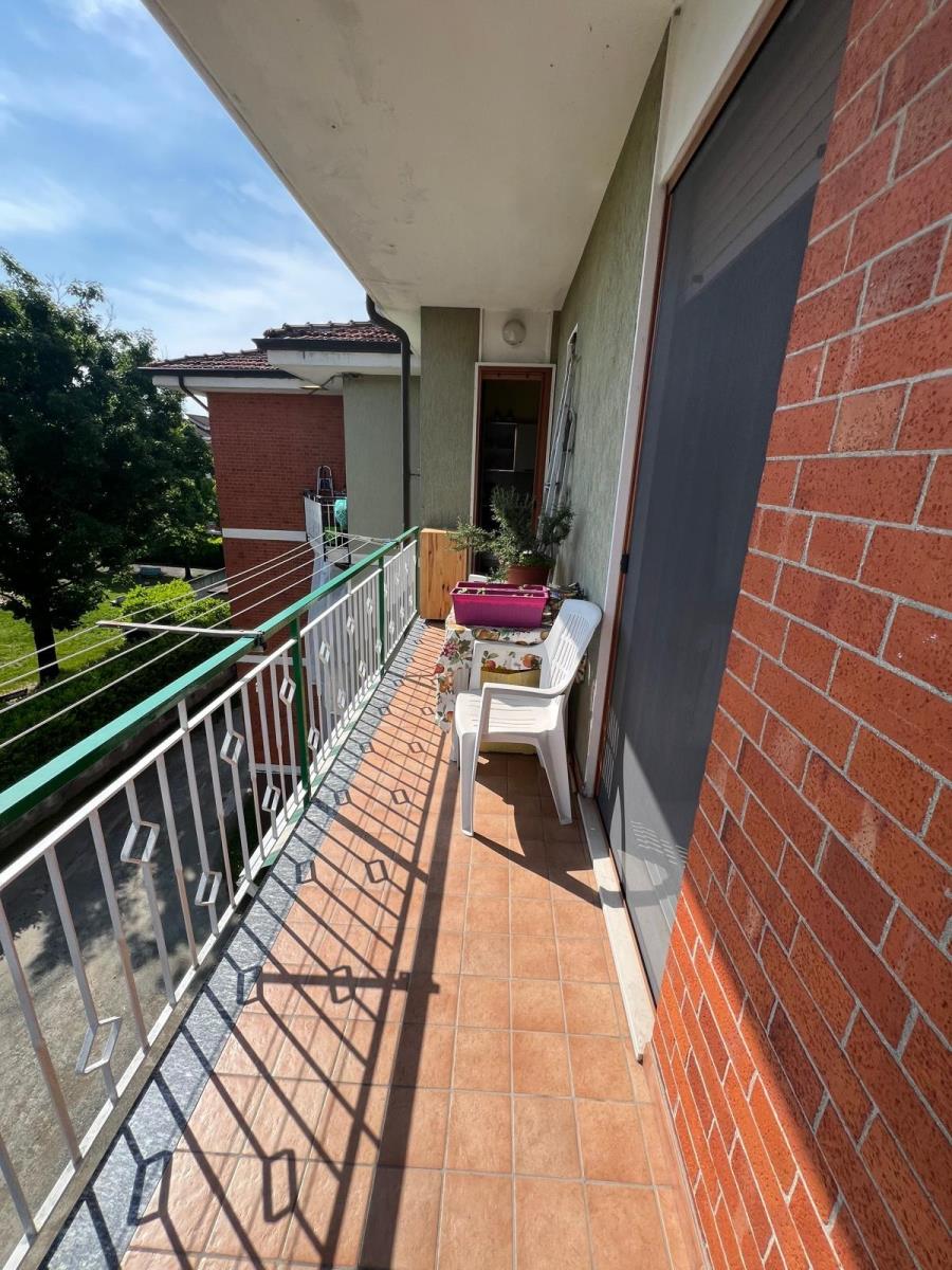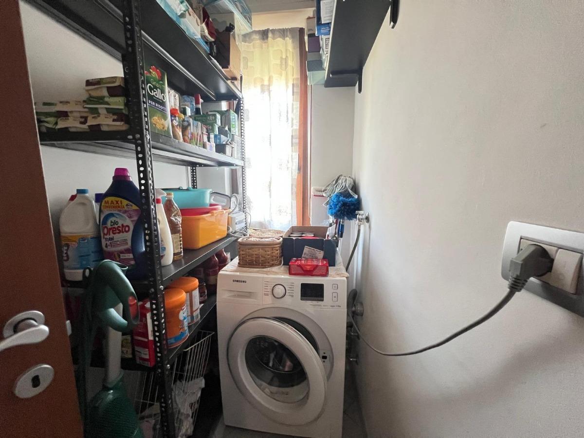 L'alloggio è composto da ingresso in disimpegno, soggiorno, cucina abitabile, due camere matrimoniali, bagno, lavanderia e due balconi.
