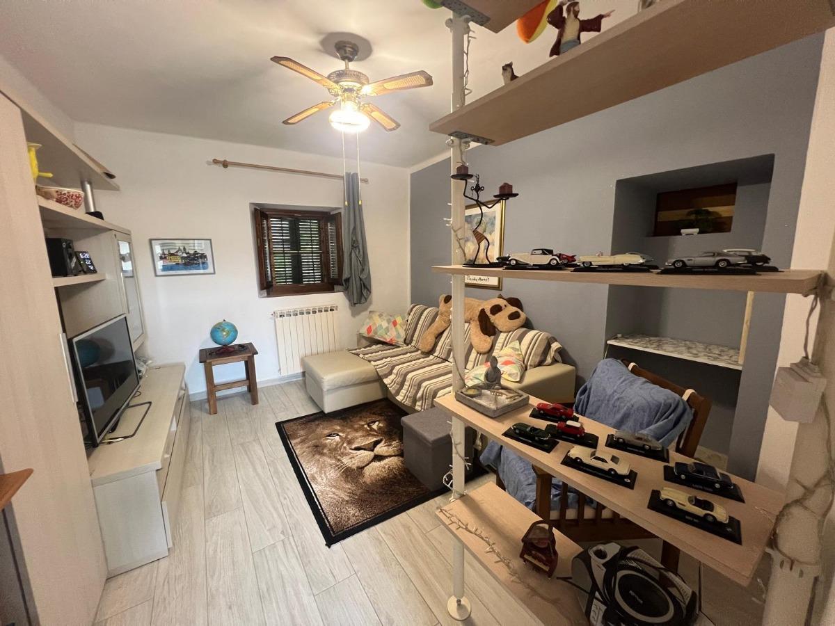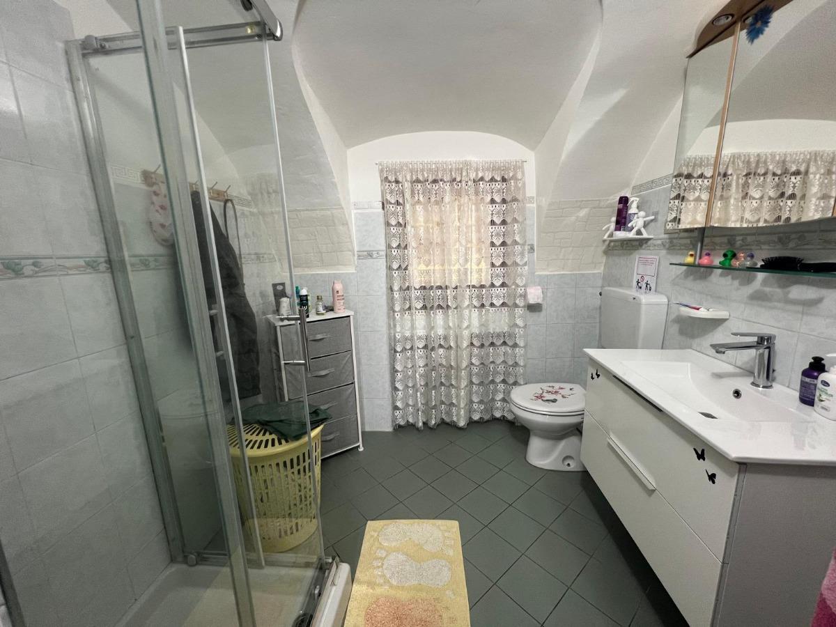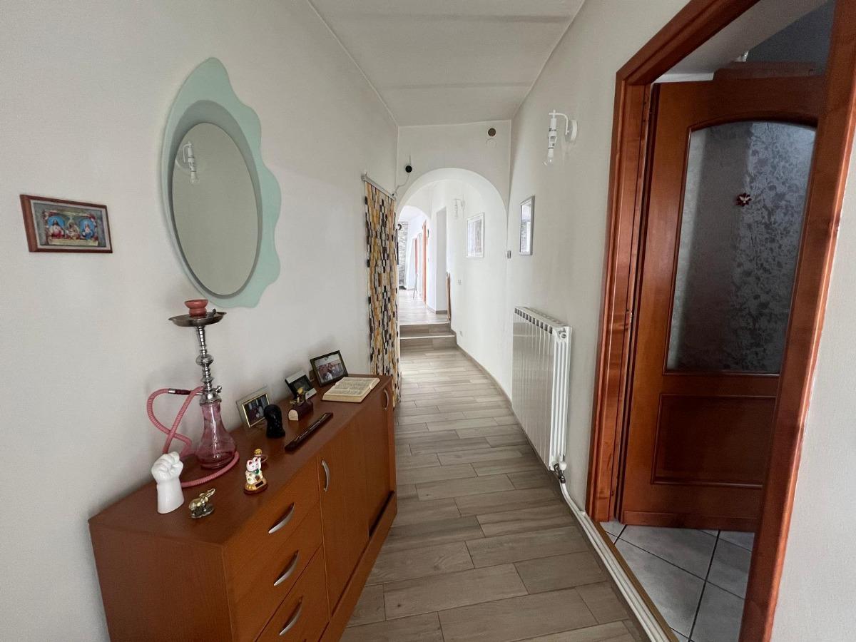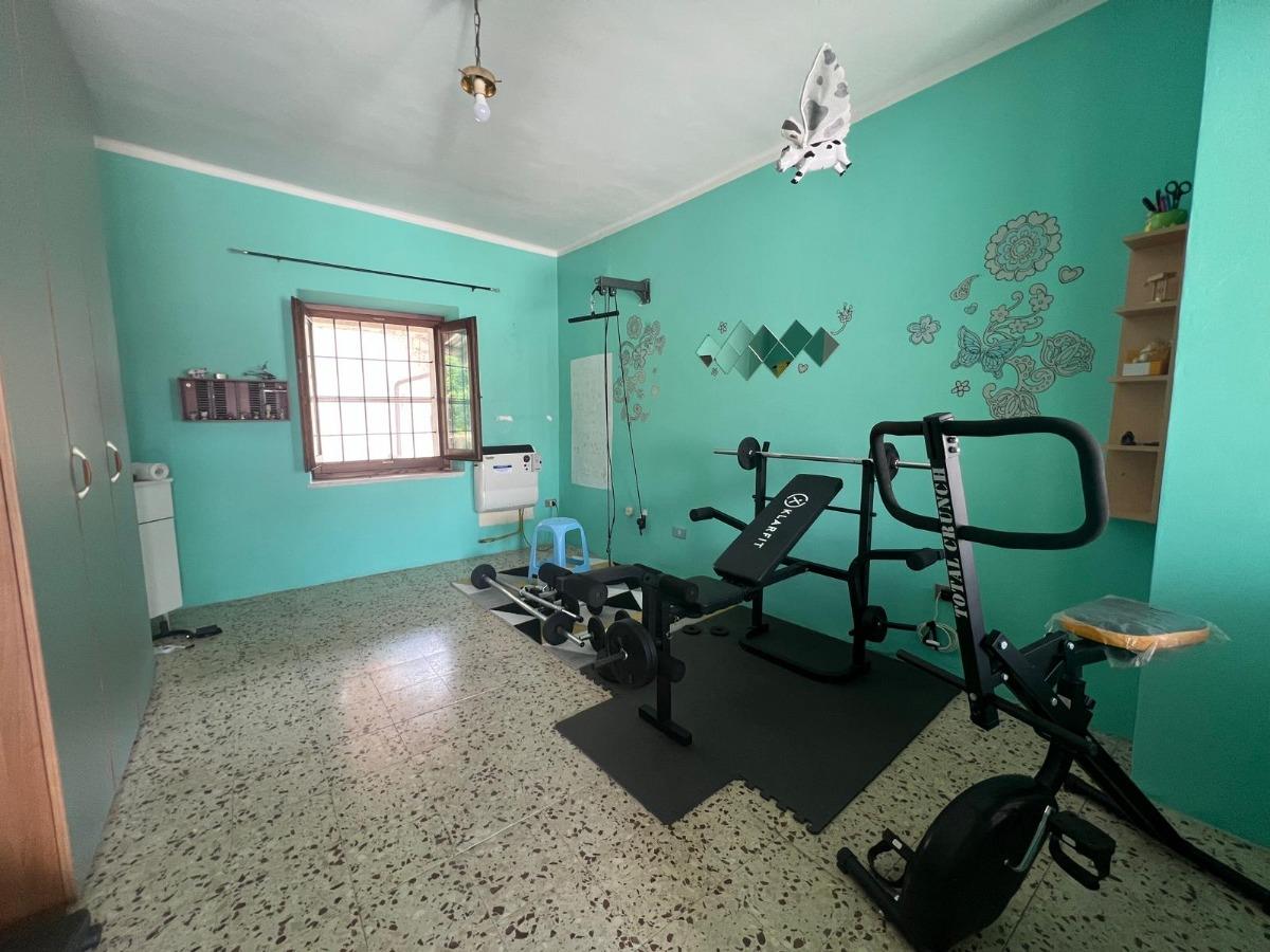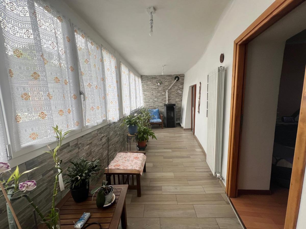 Ingresso al piano rialzato direttamente in disimpegno, cucina abitabile, disimpegno, soggiorno, antibagno, bagno, ripostiglio e veranda. Tramite scala di collegamento interna si raggiunge il secondo piano corredato da disimpegno, due camere, bagno, due vani da ristrutturare nel caso si volesse ampliare l'abitativo esistente e balcone con vista aperta sul giardino privato.