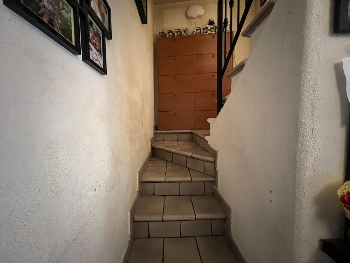 Si compone di ingresso in disimpegno al piano terreno che conduce alla cucina abitabile e bagno con vasca; tramite scala di collegamento interna si giunge al piano primo corredato da due camere e al piano secondo con camera completa di camino e terrazzo.