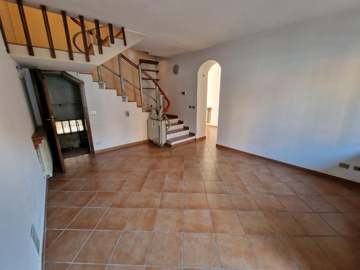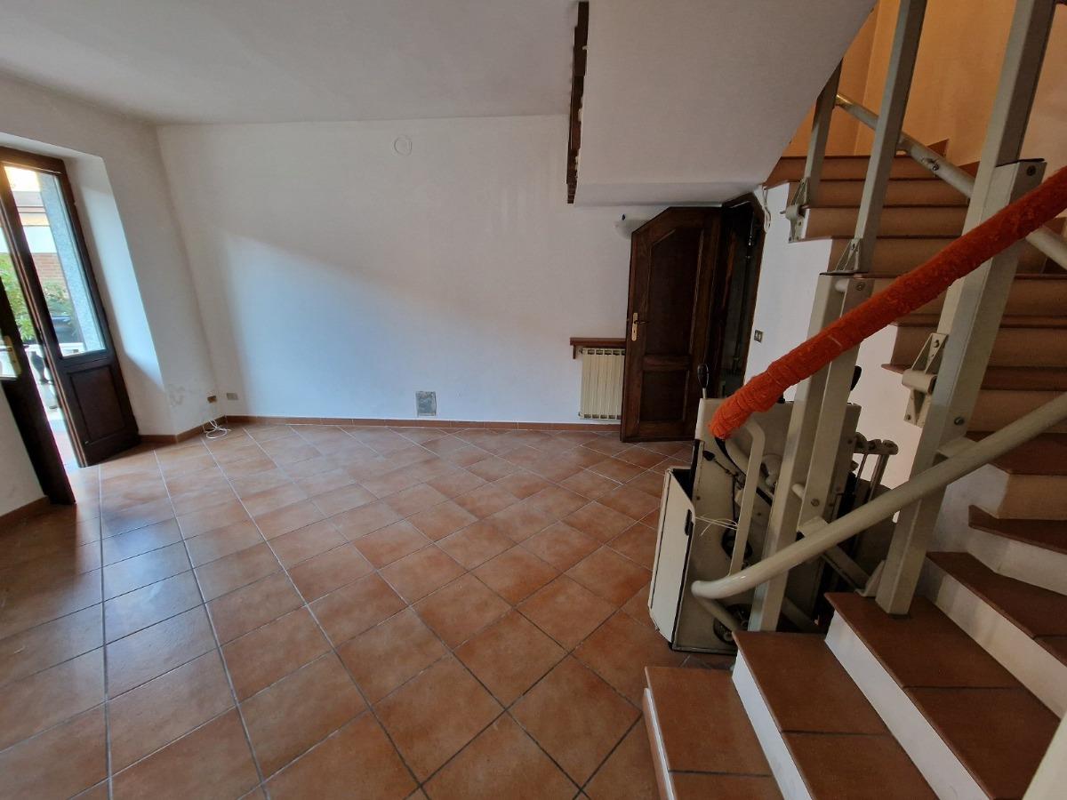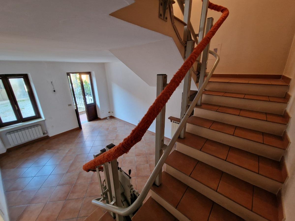 Piano terreno: ingresso su disimpegno, grande cucina abitabile e soggiorno, entrambi con accesso al cortile privato (gravato da servitù di passaggio a favore del vicino).