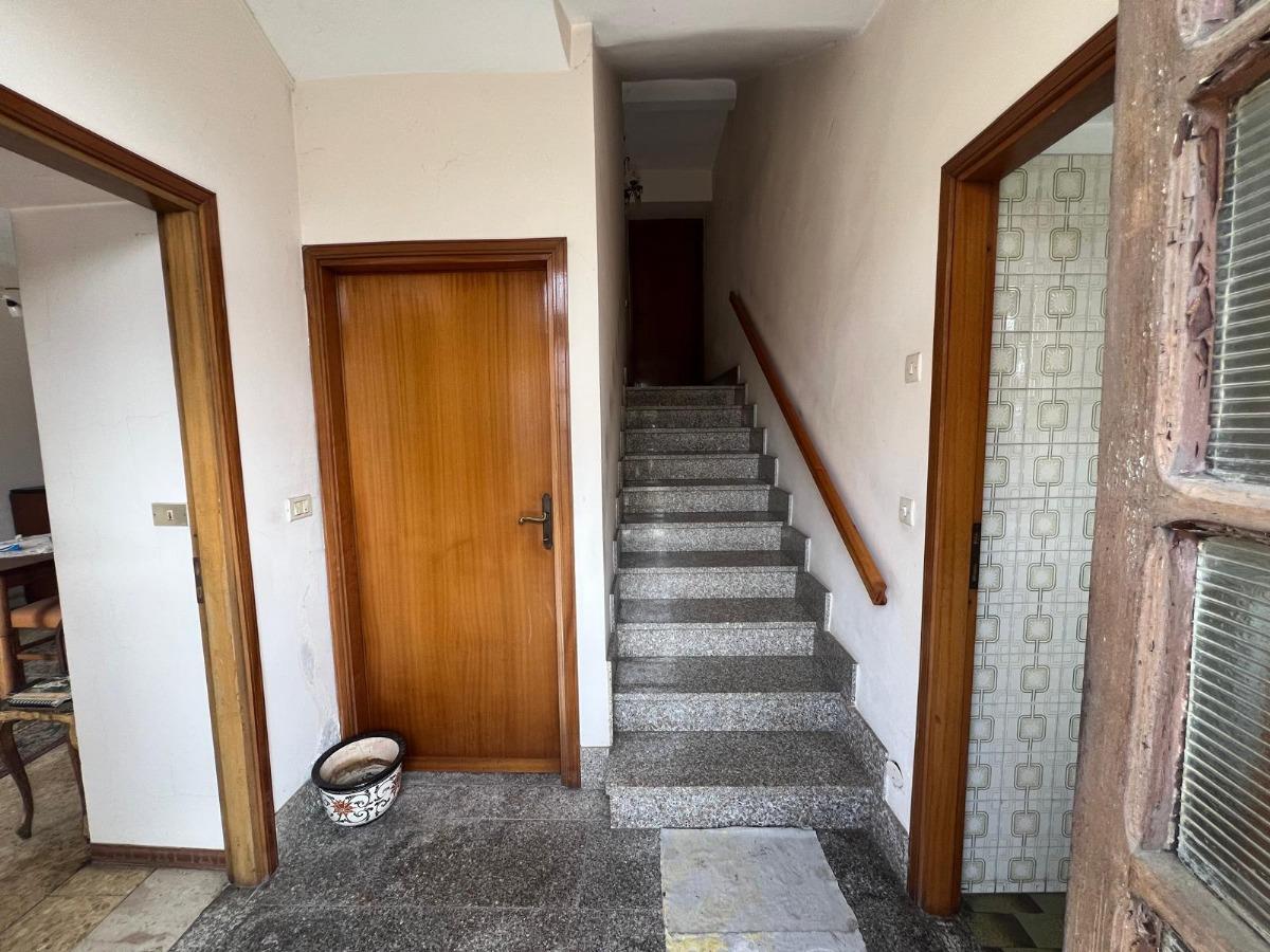 La prima unità abitativa è disposta su due livelli e si accede al piano terra, dove troviamo disimpegno con scala di collegamento al piano primo e alla zona notte, bagno, cucina, soggiorno, sala e ripostiglio; al piano primo sono presenti disimpegno, tre camere, bagno e balcone.