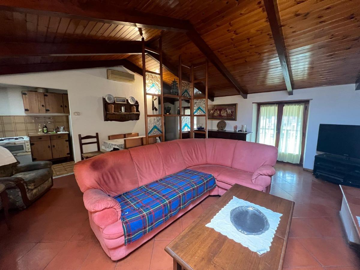 proseguendo la scala di collegamento interna raggiungiamo la seconda unità abitativa collocata al secondo piano caratterizzata da tetto a vista con cucinotta, soggiorno open space, disimpegno, due camere, bagno e balcone.