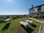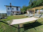 L'abitazione si sviluppa su due piani abitativi, tramite un grazioso vialetto in pietra si accede all'ingresso che permette un primo scorcio al grande soggiorno, caratterizzato da un moderno camino a legna MONTEGRAPPA con impianto di ventilazione che consente di scaldare anche le due camere più grandi al primo piano; sempre al piano terreno troviamo una spaziosa e luminosa cucina che, come il salotto, gode della presenza dell'ampio terrazzo coperto che consente di godere del panorama sottostante; vi sono poi un grande balcone ed il bagno della zona giorno provvisto di attacco lavatrice e grande box doccia in vetro.