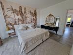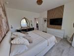 Percorrendo la scala interna si giunge al primo piano, destinato alla zona notte; qui troviamo tre camere da letto di cui due di metratura particolarmente generosa, una grande cabina armadio che consente l'accesso tramite scala interna al sottotetto utile come ulteriore deposito, il bagno della zona notte, un piccolo balcone ed un secondo grande terrazzo coperto panoramico. A protezione degli spazi abitativi gli attuali proprietari hanno installato un impianto antifurto con sensori perimetrali e volumetrici.