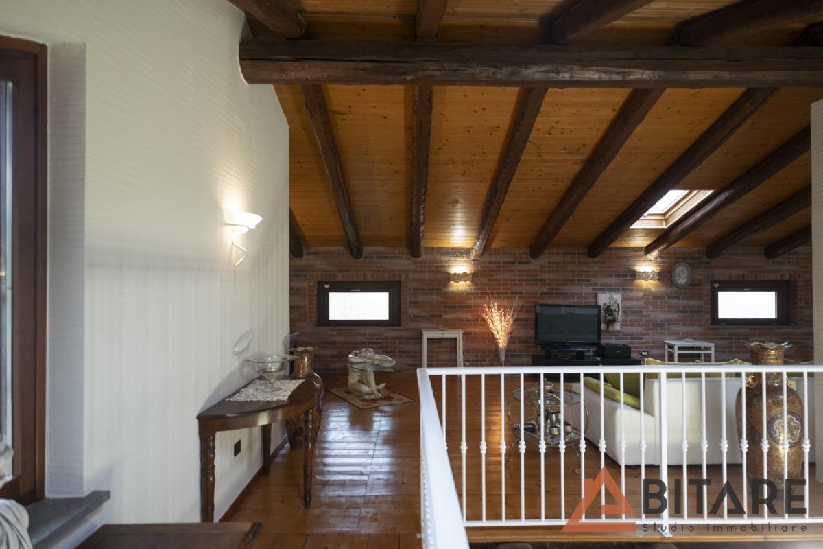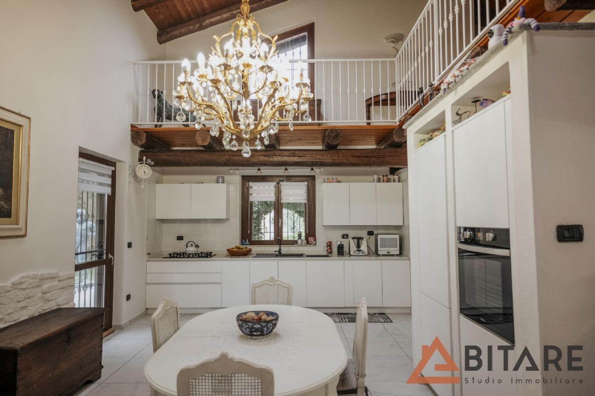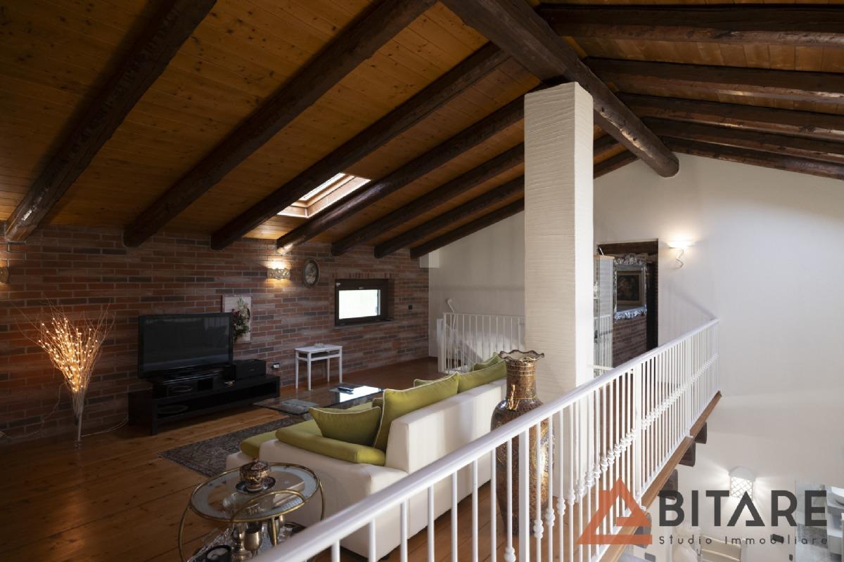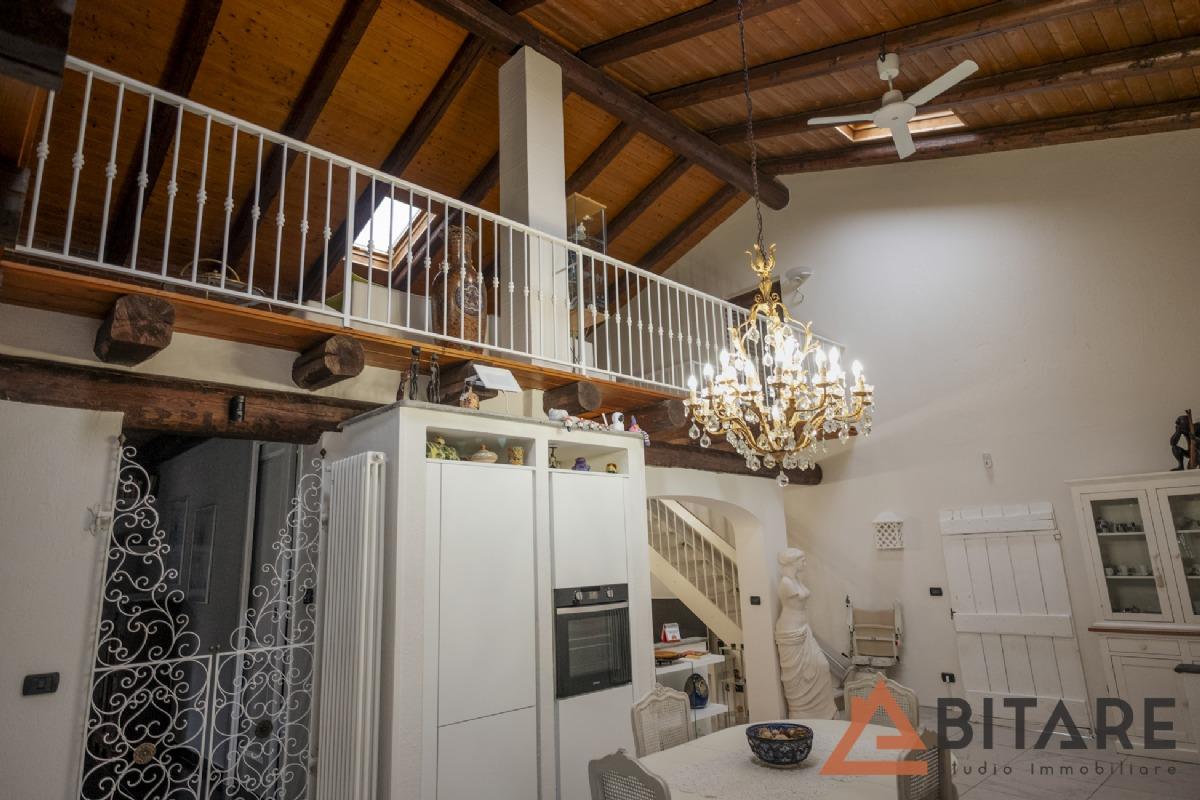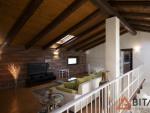 Una scala interna conduce al soppalco affacciato sulla cucina e al sottotetto con tetto a vista coibentato, ambienti affascinanti e personalizzabili come ulteriore camera, studio o area hobby.