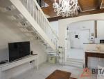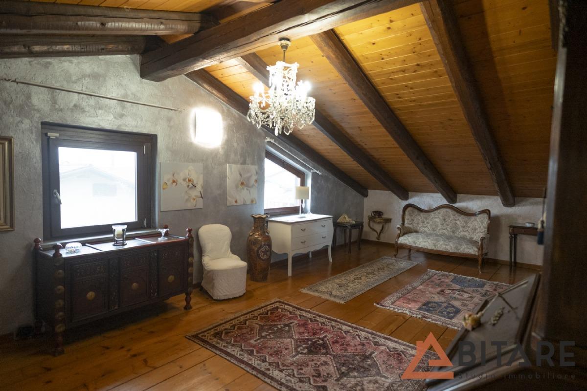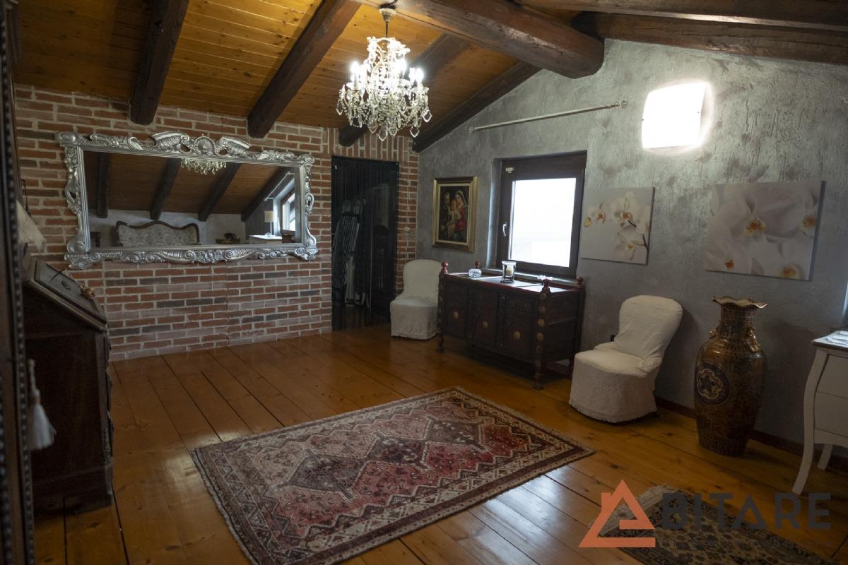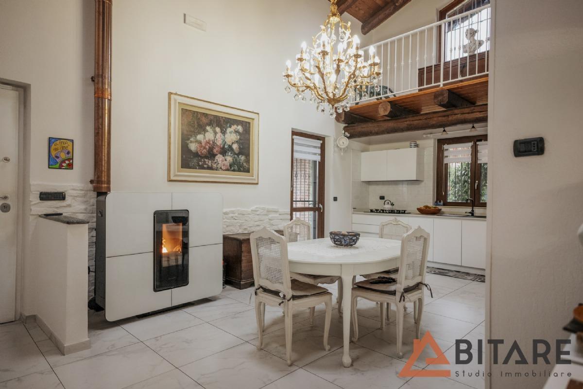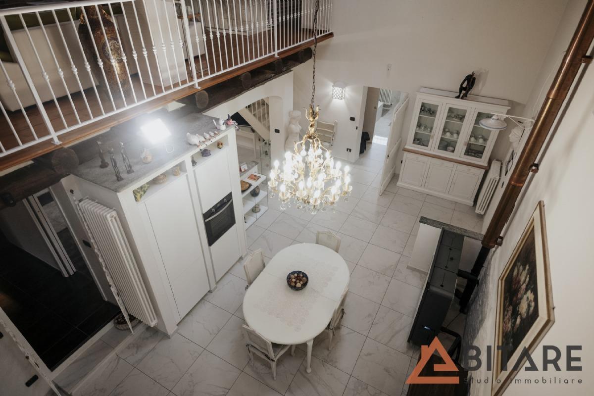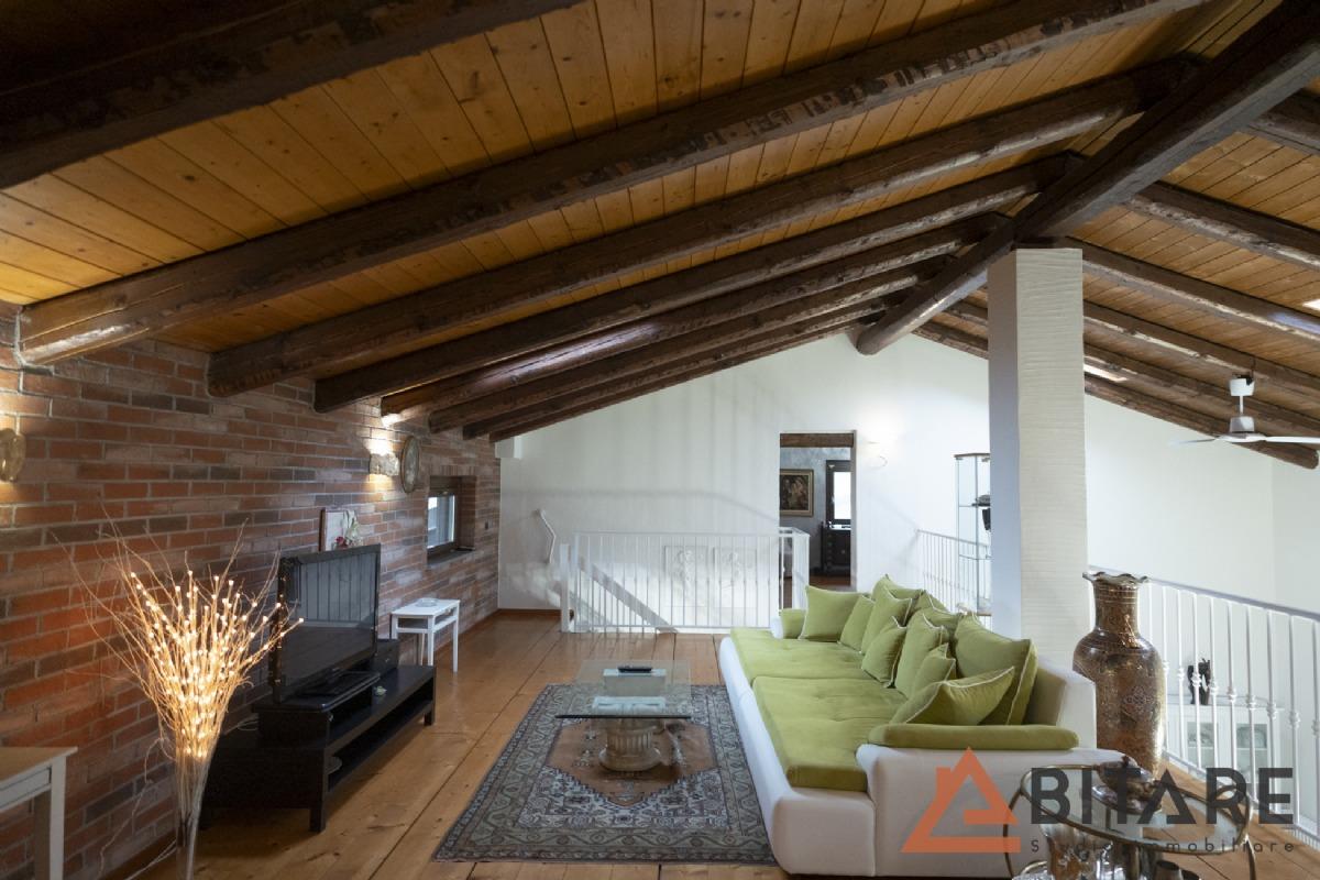 Una scala interna conduce al soppalco affacciato sulla cucina e al sottotetto con tetto a vista coibentato, ambienti affascinanti e personalizzabili come ulteriore camera, studio o area hobby.