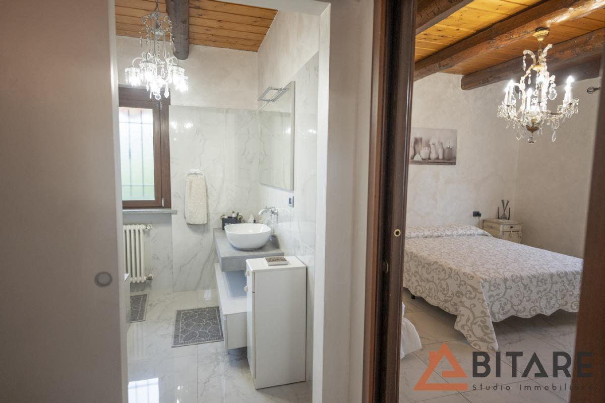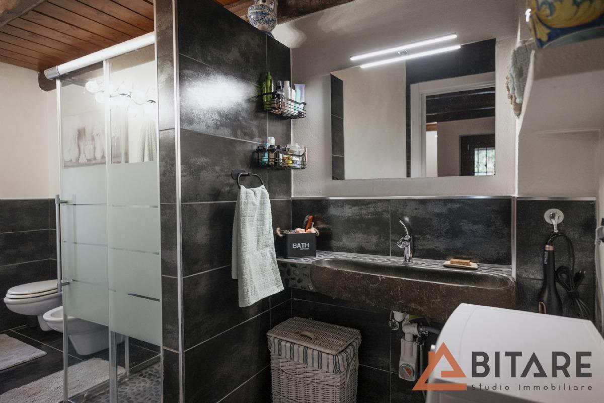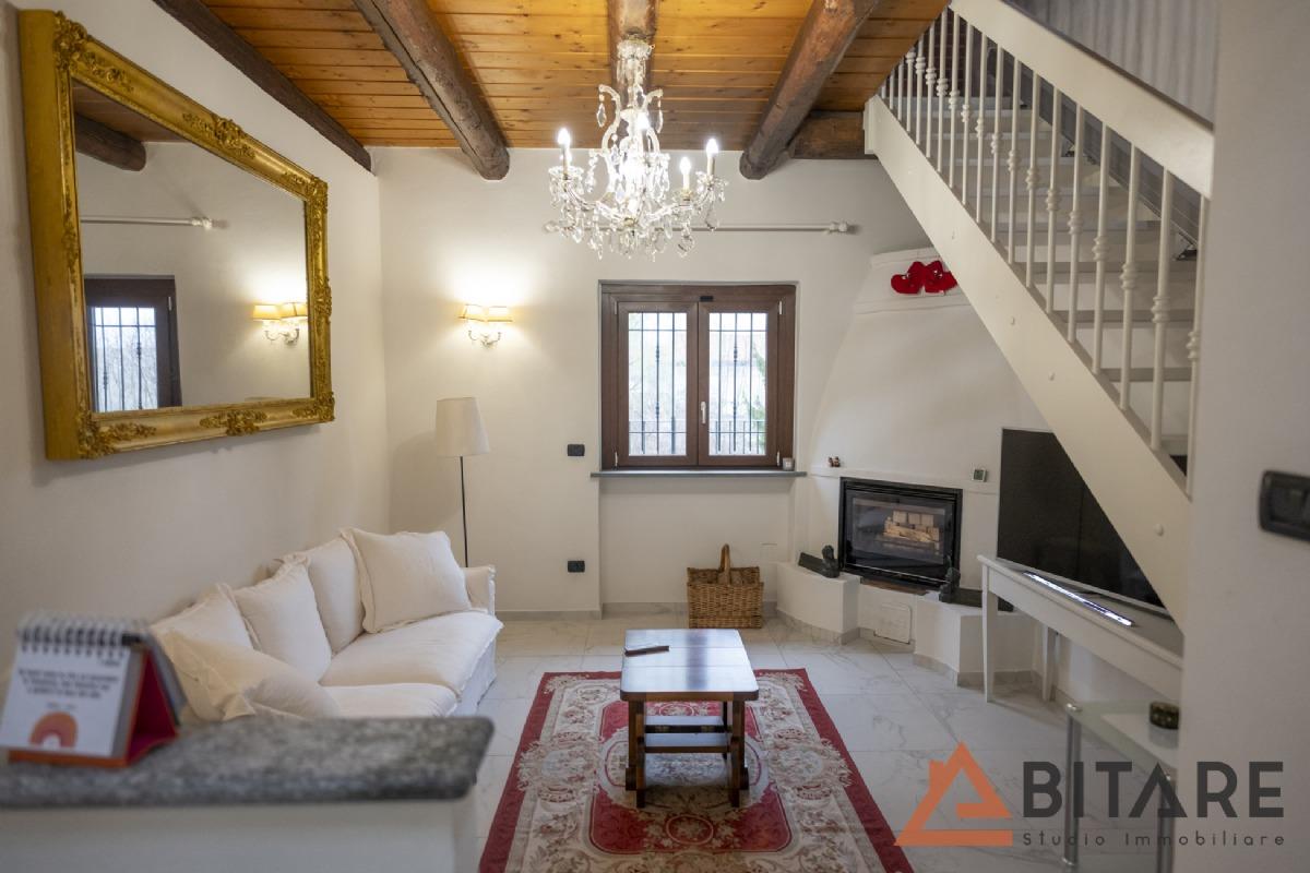 L’ingresso, attraverso l’ampio portico esterno, conduce in una calda e accogliente zona giorno composta da cucina abitabile a vista, soggiorno luminoso e un intimo salottino con camino, perfetto per creare atmosfera. I pavimenti e il bagno della zona giorno sono stati recentemente rinnovati, donando un tocco moderno e curato. La zona notte, separata da una suggestiva porta in stile shabby chic, ospita due camere versatili e un bagno con vasca ideale per il relax.