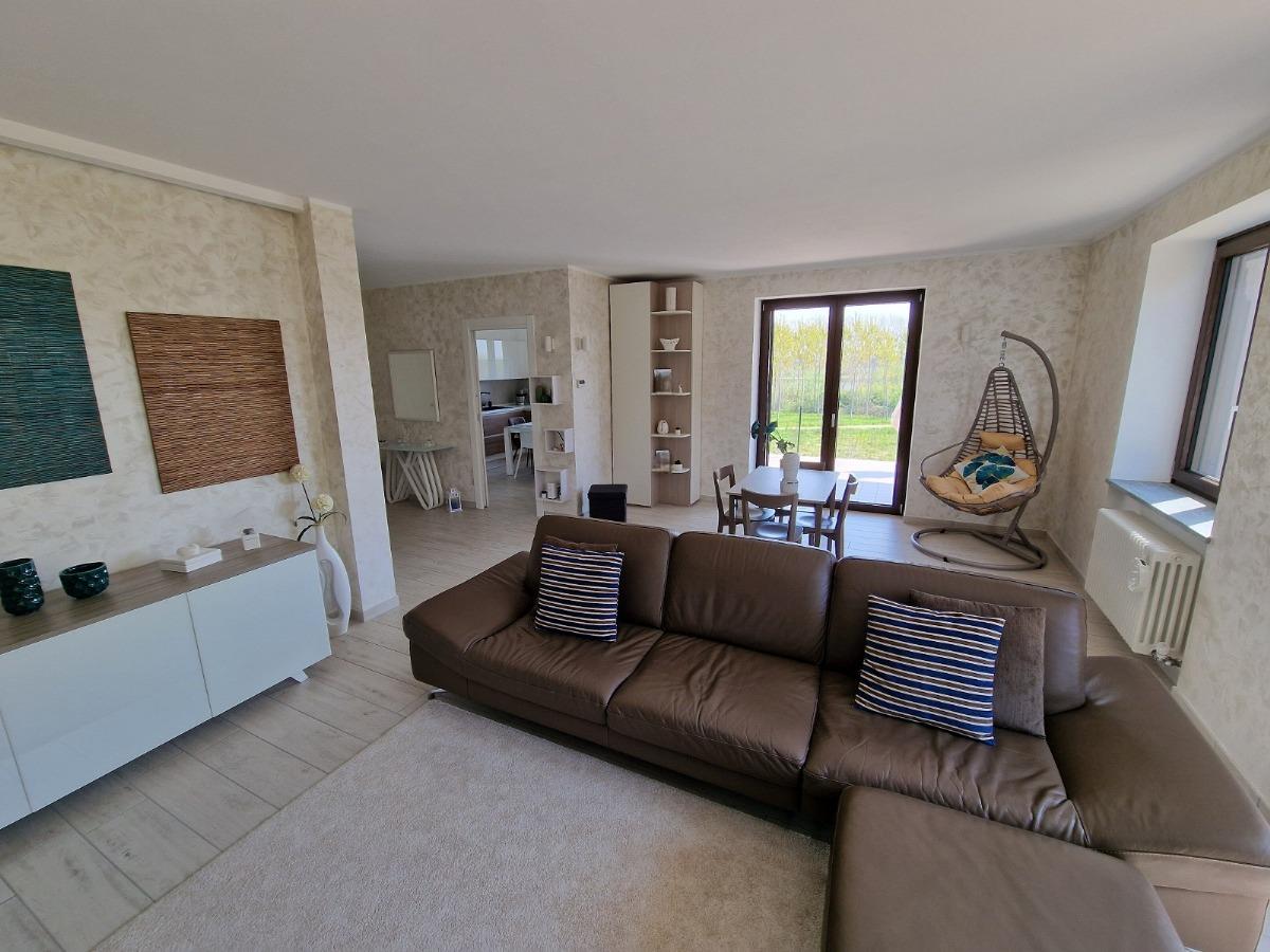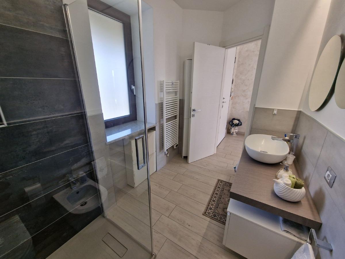 L'intera abitazione è stata rinnovata pochi anni fa: i proprietari hanno rifatto tutte le pavimentazioni, coibentato il perimetro installando un cappotto termico di 17cm, coibentato ulteriormente il sottotetto, sostituito gli infissi esterni con nuovi elementi in pvc/alluminio a taglio termico con triplo vetro, persiane in alluminio con ante orientabili, rifatto i bagni, l'impianto elettrico e ammodernato l'impianto di riscaldamento installando una nuova caldaia ibrida che integra l'energia prodotta dal nuovo impianto fotovoltaico da 9kWh; sono inoltre state installate delle batterie di accumulo con capacità di circa 22kW ed una presa di ricarica per auto elettriche nell'autorimessa.