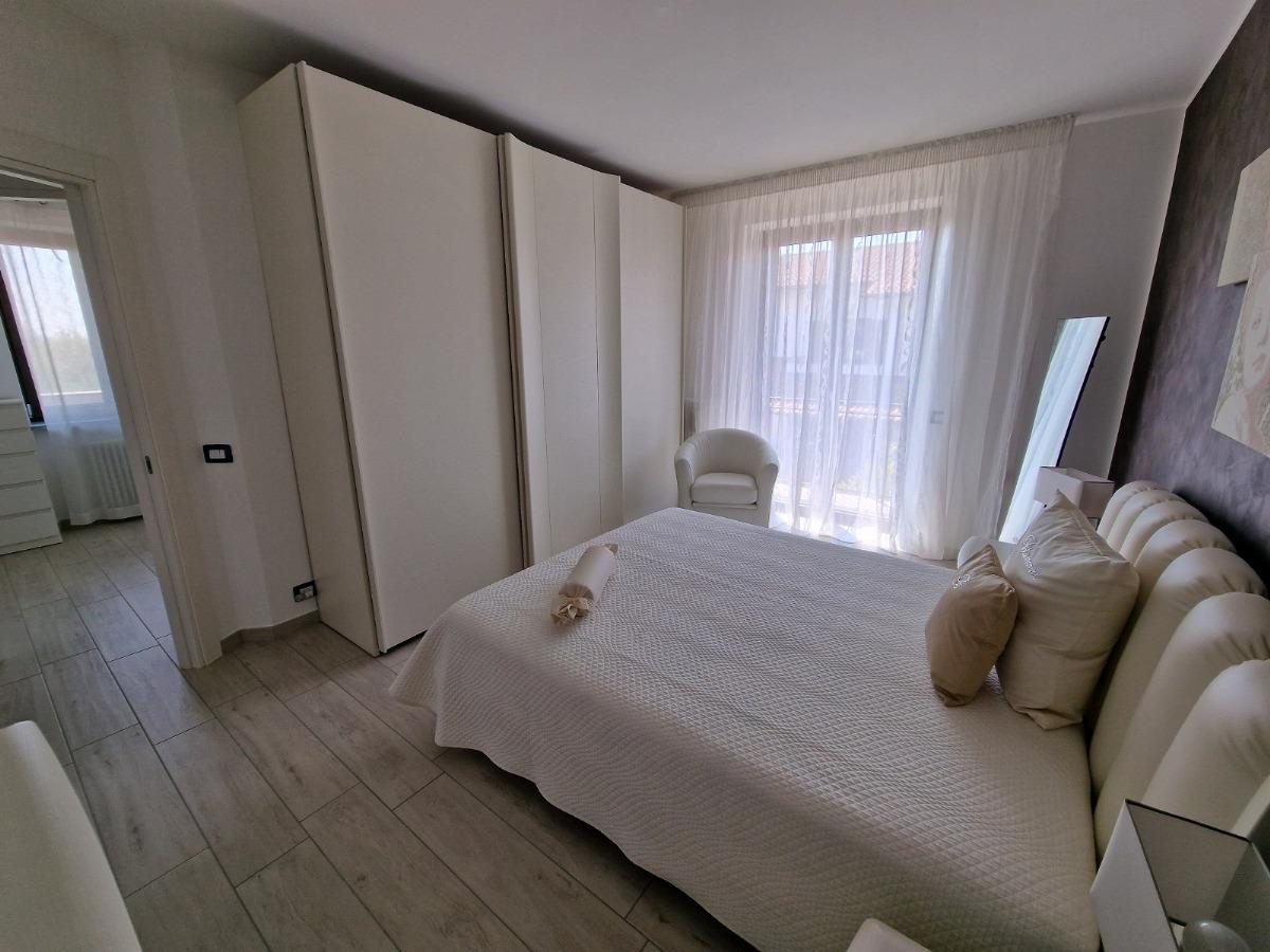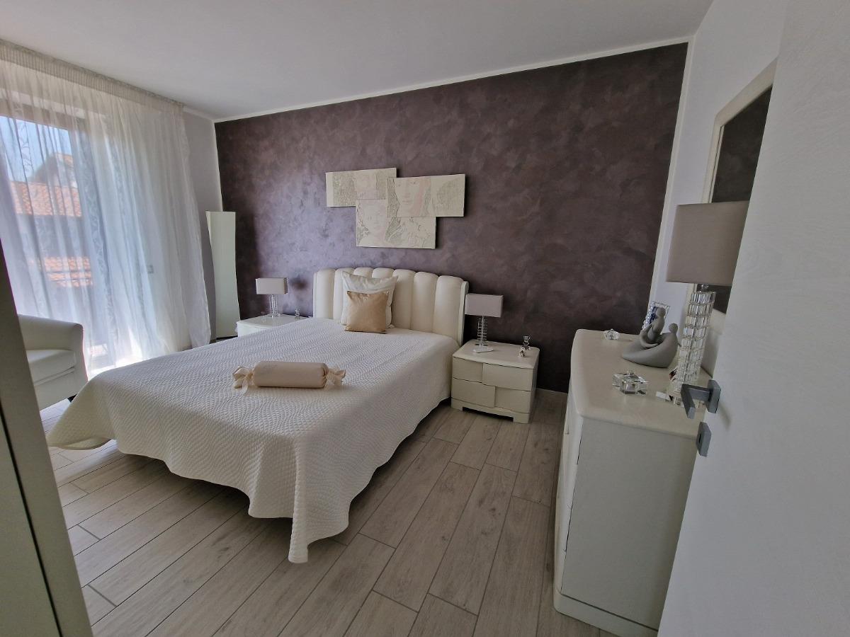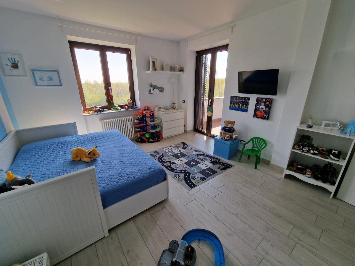 Salendo la scala arriviamo al disimpegno del primo piano, dedicato alla zona notte; qui troviamo tre camere da letto, tutte di generose dimensioni, due affacciano su un bel terrazzo coperto ed una è dotata di balcone privato;vi è poi un secondo bagno con box doccia, provvisto anche degli attacchi per la lavatrice.