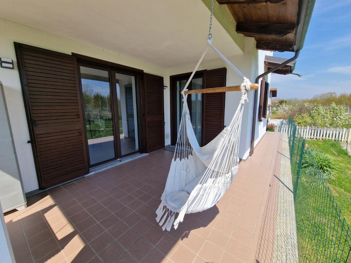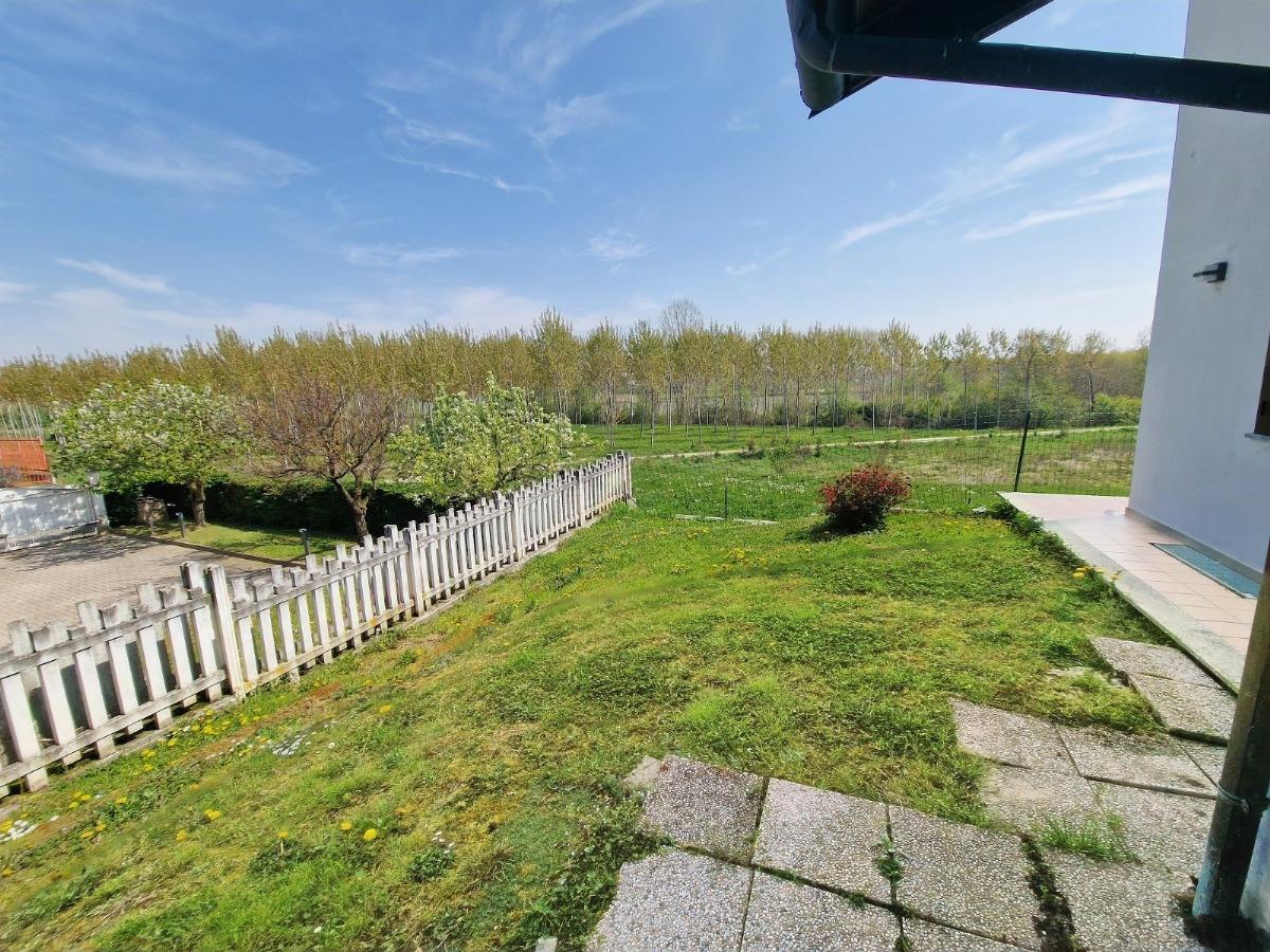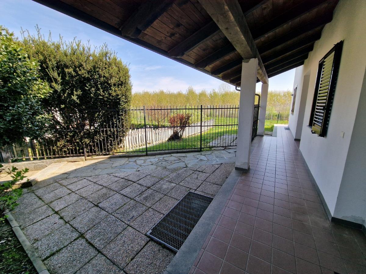 Un vialetto pedonale conduce al porticato che protegge il portoncino dell'ingresso; da qui si accede così al grande soggiorno ed alla spaziosa cucina, entrambi questi locali affacciano su un secondo portico perfetto per pranzare all'aperto nella bella stagione godendosi la quiete circostante; vicino al vano scala troviamo il bagno di questo piano, caratterizzato dalla comoda cabina doccia vetrata.